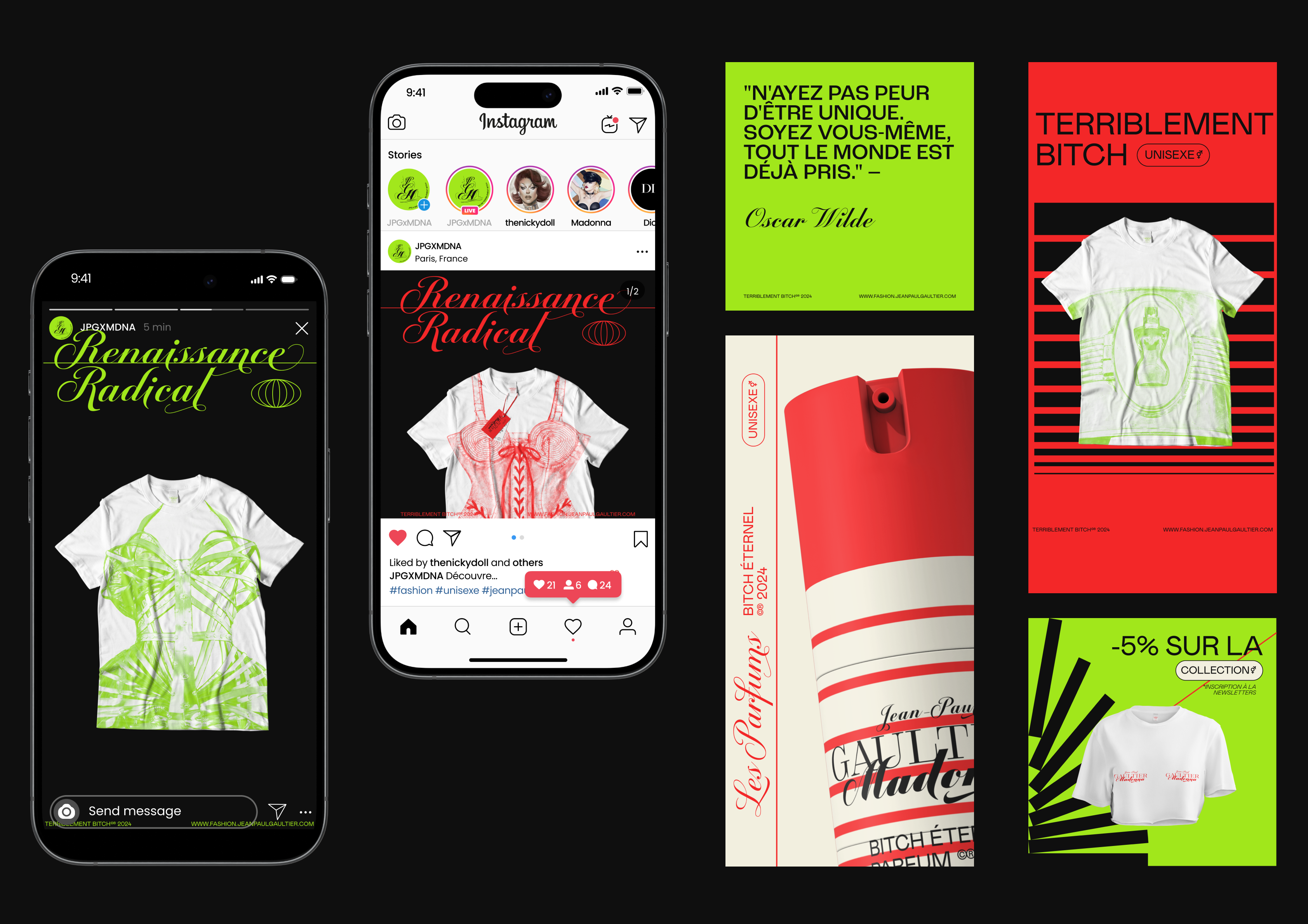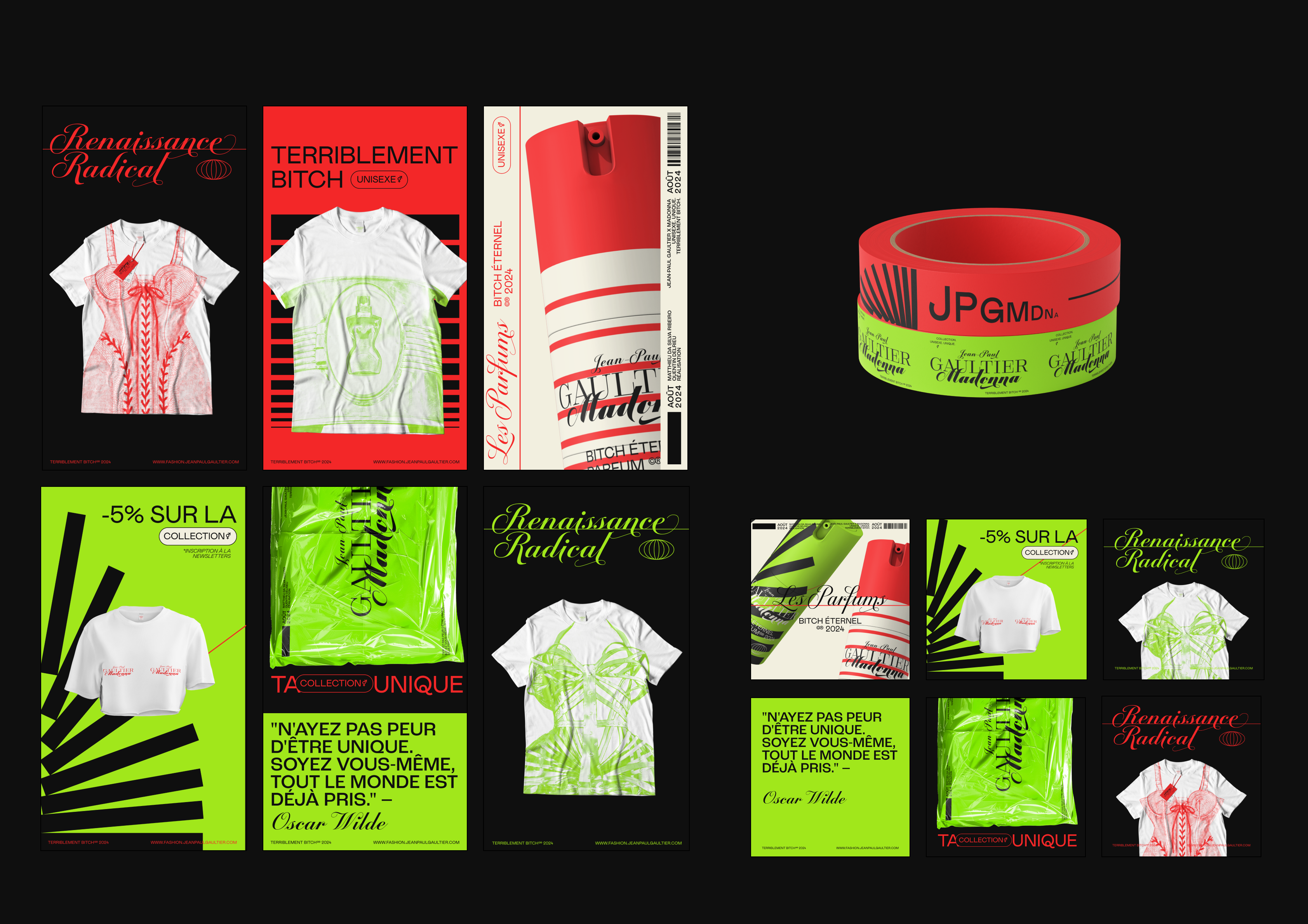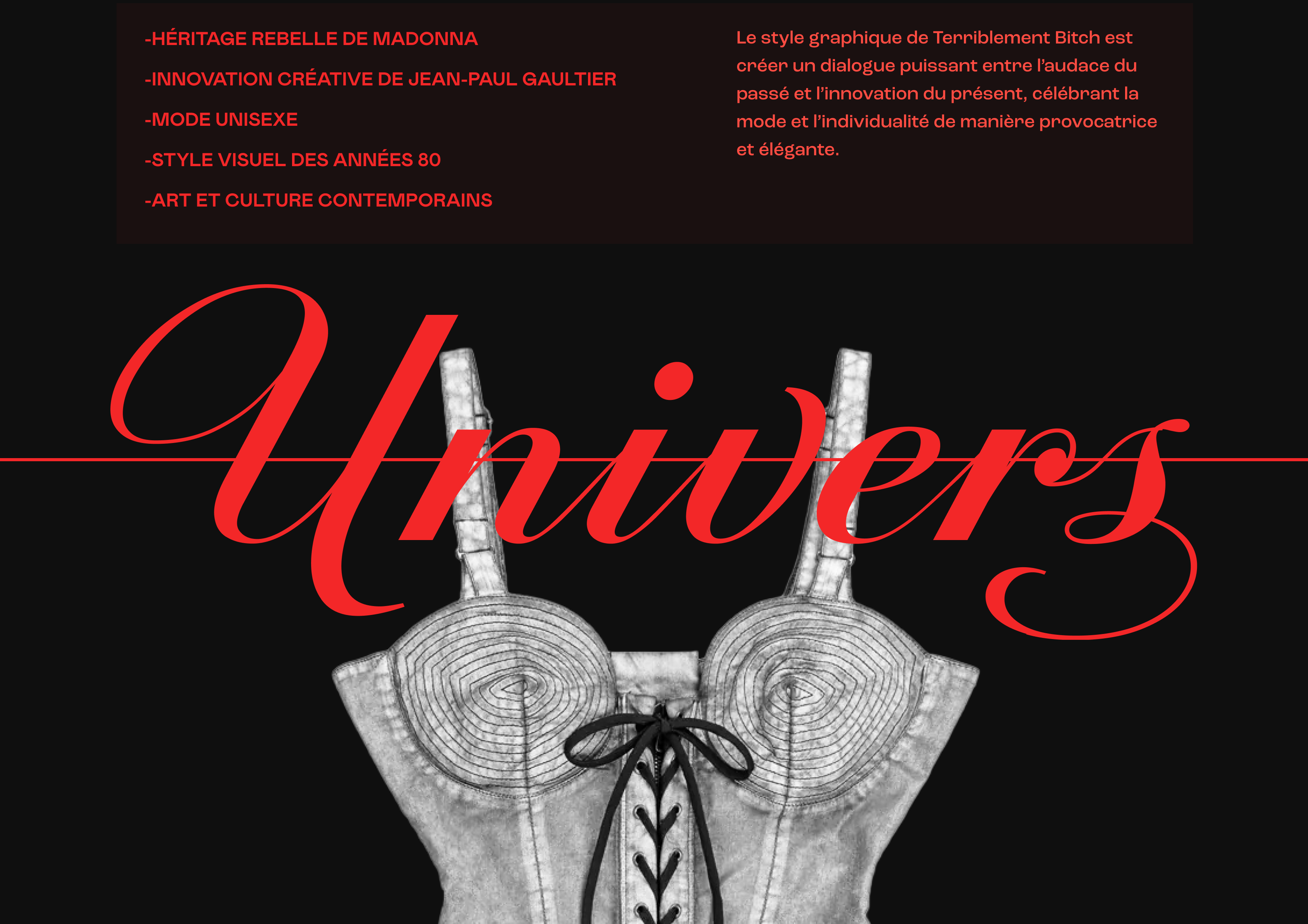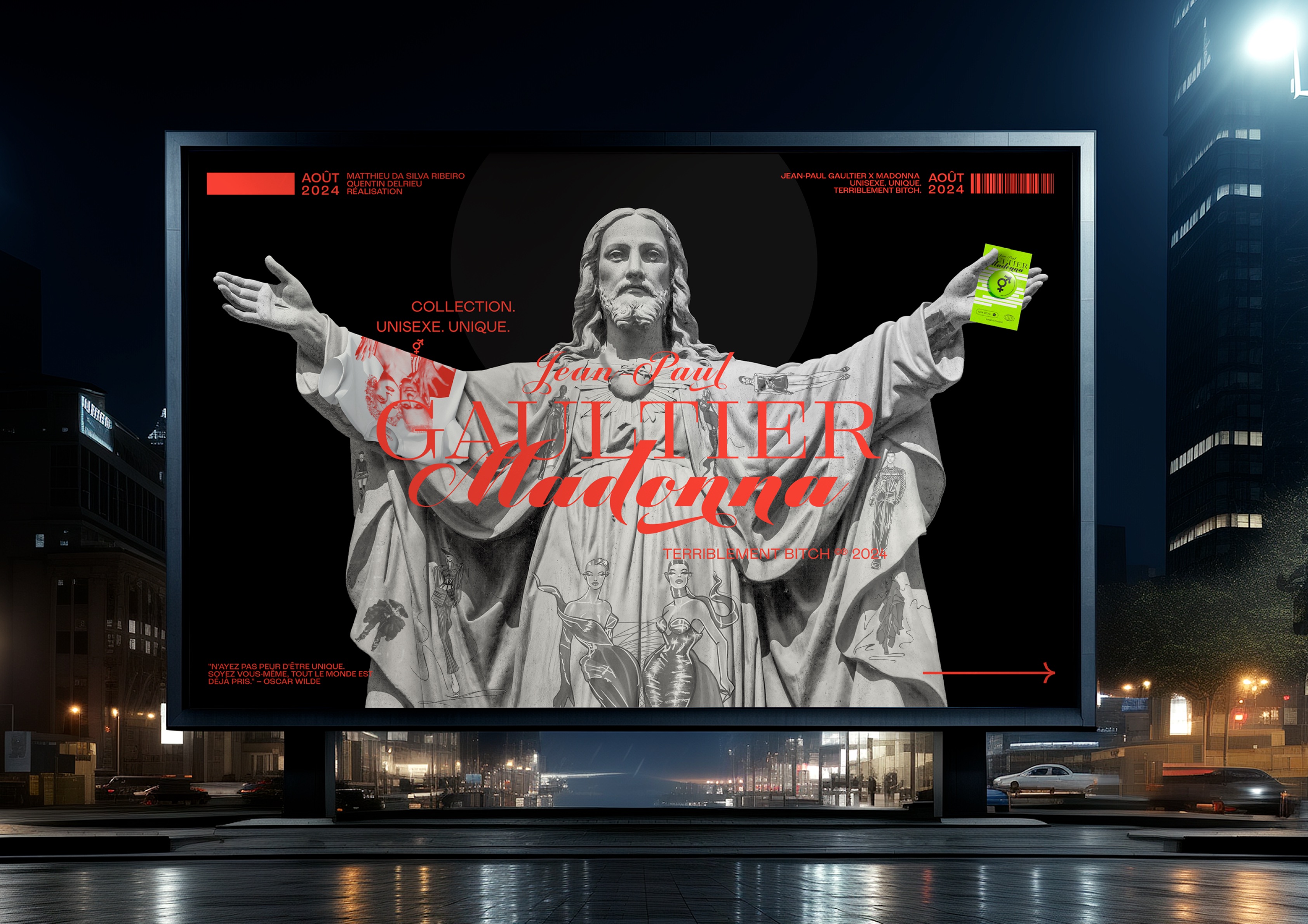 JPG x MDN est un projet de concept imaginant une collaboration entre Jean-Paul Gaultier et Madonna. À travers cette proposition, j’explore la rencontre entre deux univers forts : l’esthétique iconique de Jean-Paul Gaultier et l’énergie performative de Madonna. Le projet développe une direction visuelle hybride, mêlant codes de la mode, graphisme et culture pop, afin de créer une identité contemporaine et expressive.